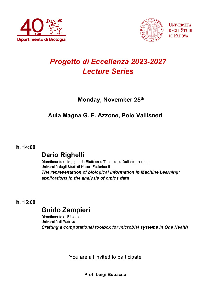 Dario Righelli, Dipartimento di Ingegneria Elettrica e Tecnologie Dell’informazione Università degli Studi di Napoli Federico II, “The representation of biological information in Machine Learning: applications in the analysis of omics data”