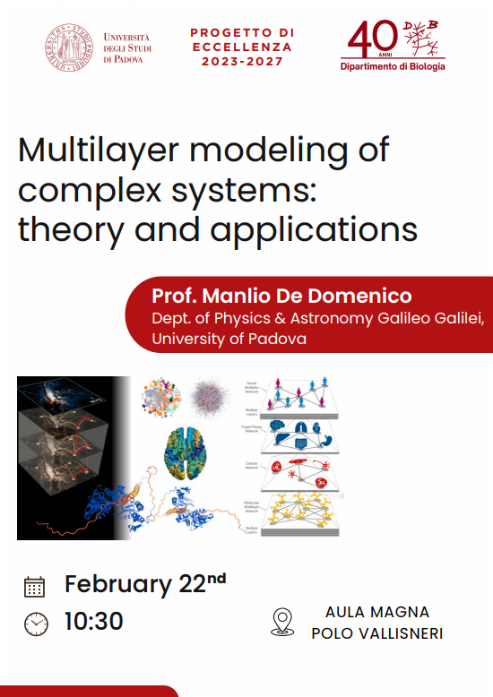 Prof. Manlio De Domenico, Dipartimento di Fisica e Astronomia Università degli Studi di Padova,“Multilayer modeling of complex systems: theory and applications”