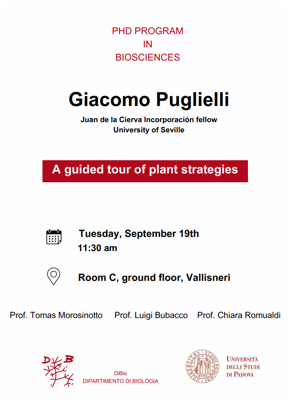 Dott. Giacomo Puglielli, Juan de la Cierva Incorporación, University of Seville, “A guided tour of plant strategies”