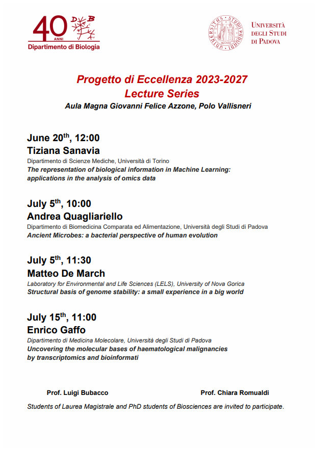 Dott. Enrico Gaffo, Dipartimento di Medicina Molecolare Università degli Studi di Padova, “Uncovering the molecular bases of haematological malignancies by transcriptomics and bioinformatics”