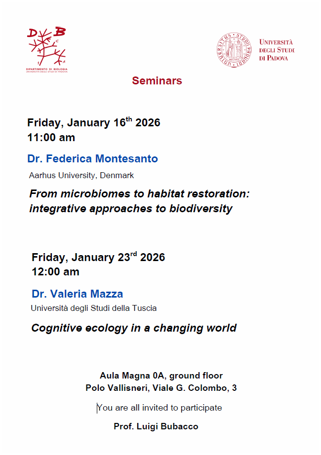 Dr. Davide De Battisti, Dipartimento di Biologia, Universit degli Studi di Padova, “Applying a trait-based approach to understand marine urbanisation impacts and inform restoration strategies”